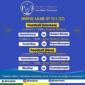 Guhera ku wa 12 kugeza ku wa 14 Werurwe 2025, amarushanwa y’"Umurenge Kagame Cup" 2025 ku rwego rw’Intara y’Amajyepfo yatangiye mu mikino ya 1/4 mu…