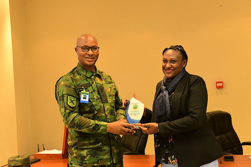 Nyuma habayeho umwanya wo kuganira ndetse no guhana ibitekerezo. Brig. General NGENDAHIMANA Jean Chrisostome wari uyoboye iryo tsinda yashimiye ubuyobozi bw’intara bahana impano.