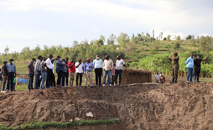 Igishanga cya Kamiranzovu kiri gusanwa aho cyari cyarangijwe n'imvura yaguye mu i Tumba.