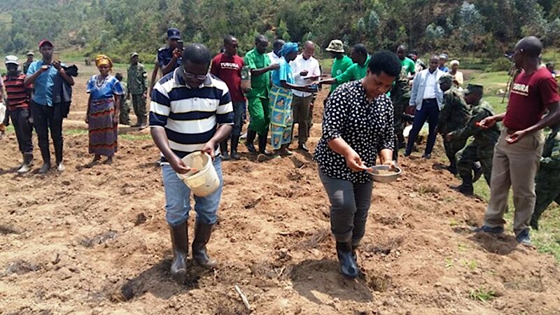The launching of the agricultural season 218A in Nyaruguru District, was presided over by Hon Governor Mureshyankwano Marie Rose,with the Mayor and other leaders and security organs, in Kibeho District, Rwoganyoni marshland this Tuesday 19th of September 2017.