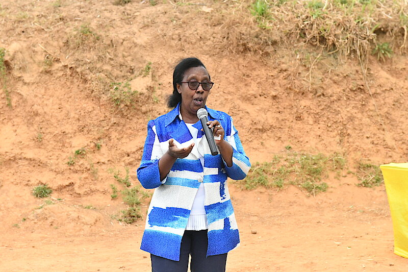 Guverineri Alice KAYITESI ari kumwe n’itsinda ririmo Umuyobozi w'Urwego rw'igihugu rushinzwe kugenzura iyubahirizwa ry'ihame ry'uburinganire n'ubwuzuzanye Rose RWABUHIHI, Umunyamabanga Uhoraho muri minisiteri y’Uburinganire n’Iterambere ry’Umuryango Mireille BATAMULIZA, Umuyobozi w’Akarere ka Muhanga KAYITARE Jacqueline basuye Umudugudu wa Cyanika mu Kagari ka Masangano Umurenge wa Nyabinoni. Uyu mudugudu ukaba waratoranyijwe kuzeserezwamo umuhigo wo kwimakaza ihame ry'Uburinganire.